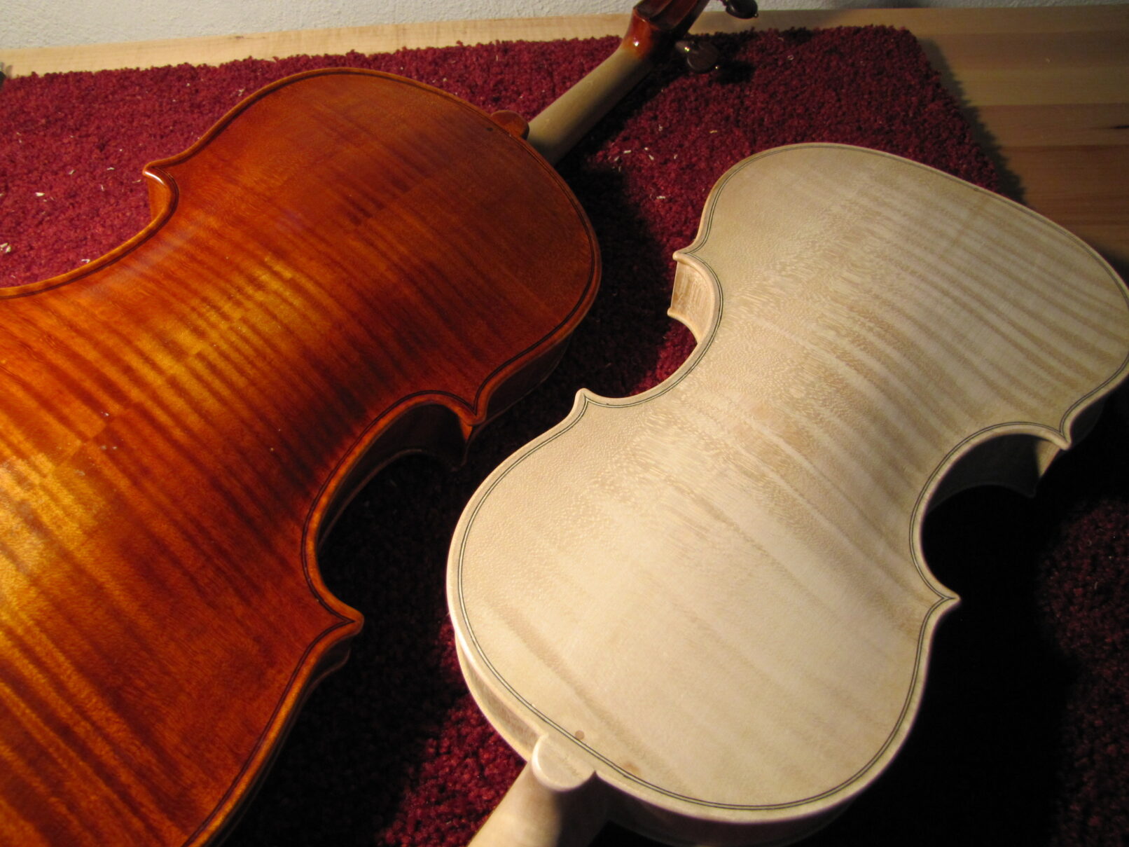 Viola #2 made in 2010, this viola is a Guadagnini model. It is owned and played on by M. Abott who was a local player who recently moved to Maine.